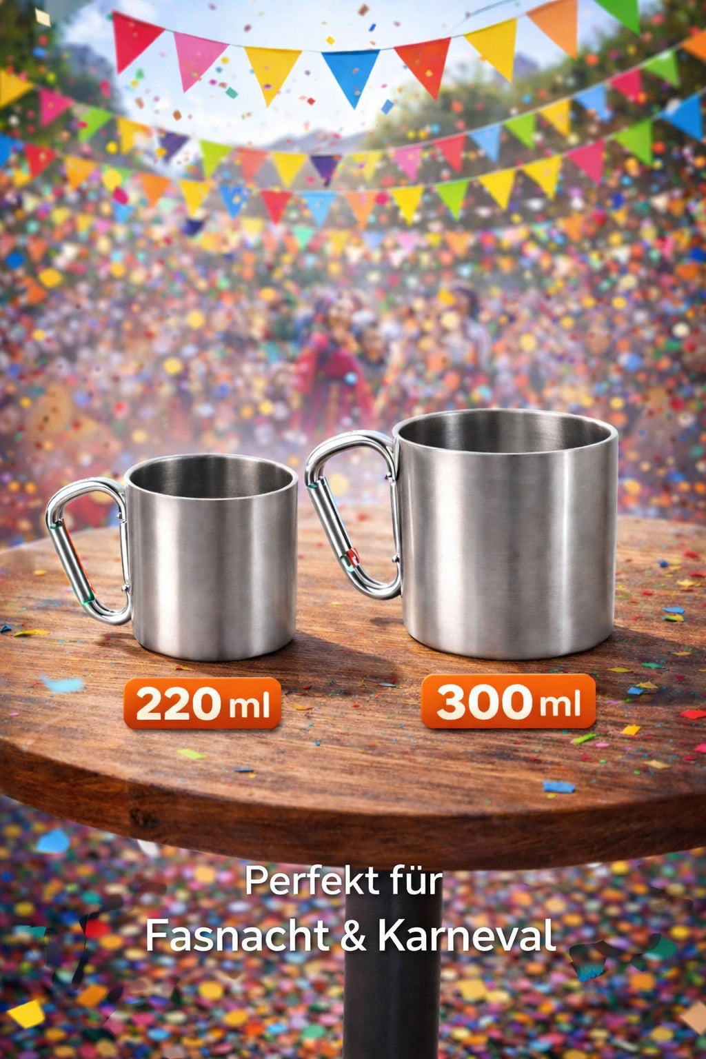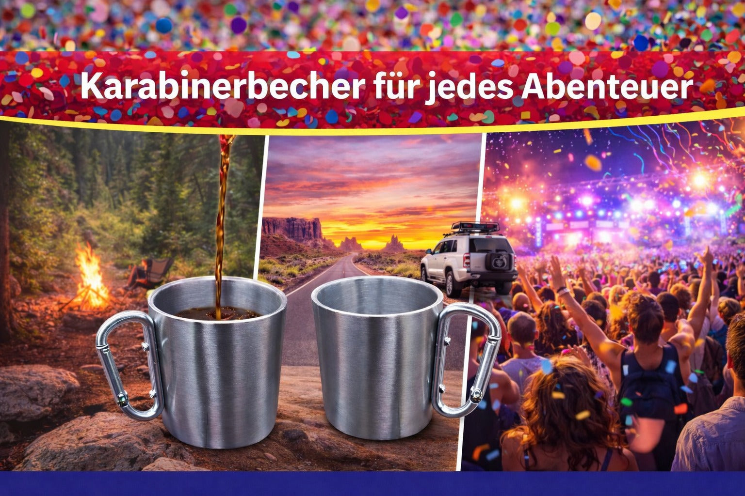 Der Karabiner hält deinen Becher sicher und jederzeit griffbereit.